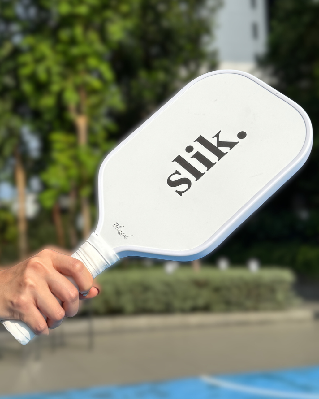 the slik. pickleball paddle is designed for performance and style. with a carbon fibre surface, honeycomb core and thermoformed unibody structure, it delivers durability and precision.